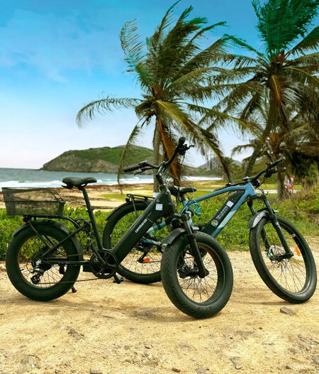 Le vélo électrique est le moyen le plus simple et agréable pour visiter Terre-de-Haut sans stress.